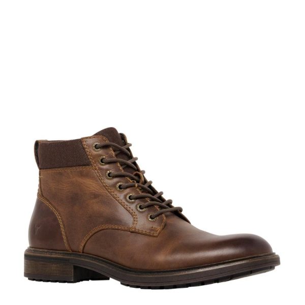 Beau, men’s casual boots in distressed brown leather, men’s lace-up boots featuring seven eyelets. Experience enhanced comfort with a padded material collar and easy slip-on access through the inside zip.