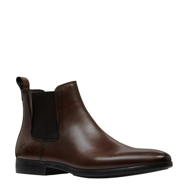 Matteo, our men’s leather Chelsea boots. These brown Chelsea dress boots boast a soft chisel toe shape and are crafted for both style and durability.