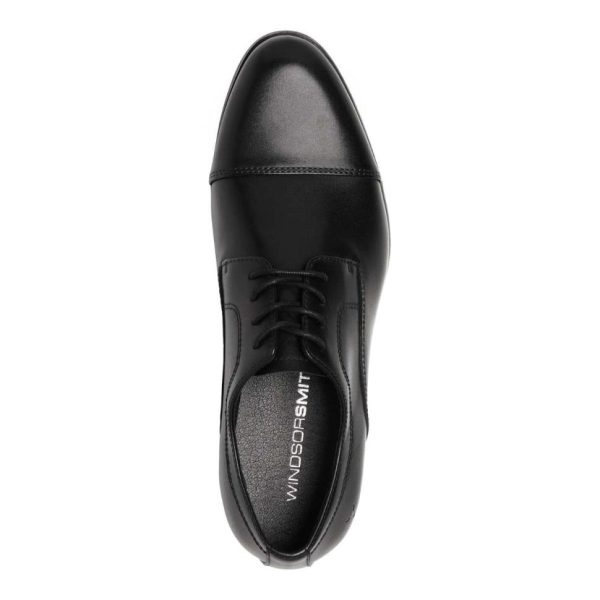 Derby toe cap leather Dress shoe with side stitching detail on side. Four eyelet facing lace up. HI – shine dress look finish on upper. Almond toe shape.