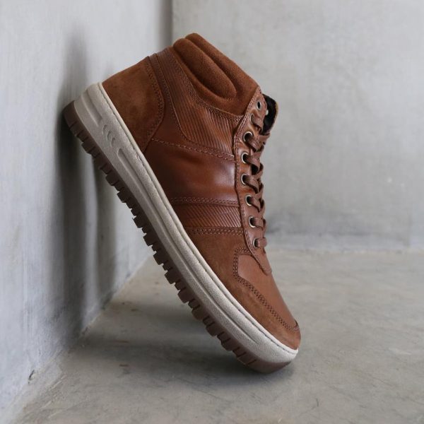 Casual men’s ankle boots with a sporty design. Featuring a combination suede/leather upper, padded collar, and textured leather panels.