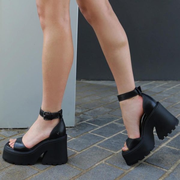 Black chunky platform sandals with block heels and our iconic chunky cleated platform sole, these platform sandals redefine style.