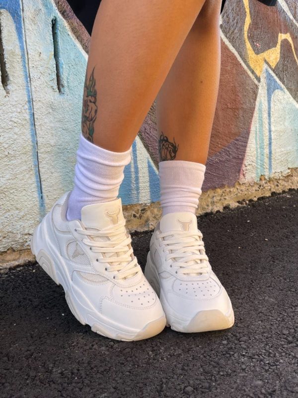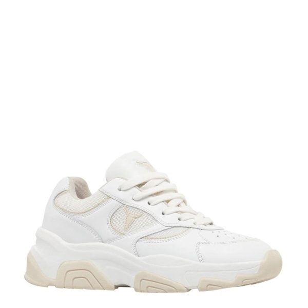 Casual leather chunky sneakers, the sporty silhouette, featuring a combination of white leather and mesh upper, unique contrast upper detailing, complemented by a two-colour sole.