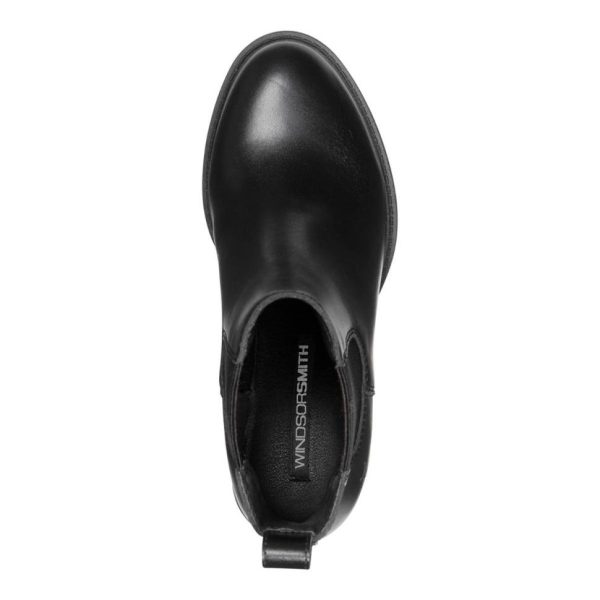Varsity’, women’s black leather Chelsea boots featuring a classic almond toe shape and standing on 70 mm mid block heels. With double-sided woven elastic gusset and leather pull tabs. Crafted with a durable leather upper and non-leather lining.