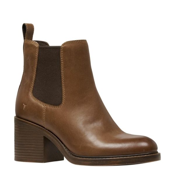 ‘Varsity’, designed with a classic Chelsea boot silhouette, these boots feature a sleek leather upper and double-sided knit elastic gussets for a snug fit. The almond toe shape adds a stylish touch, while the 70 mm mid block heel gives you just the right amount of height.